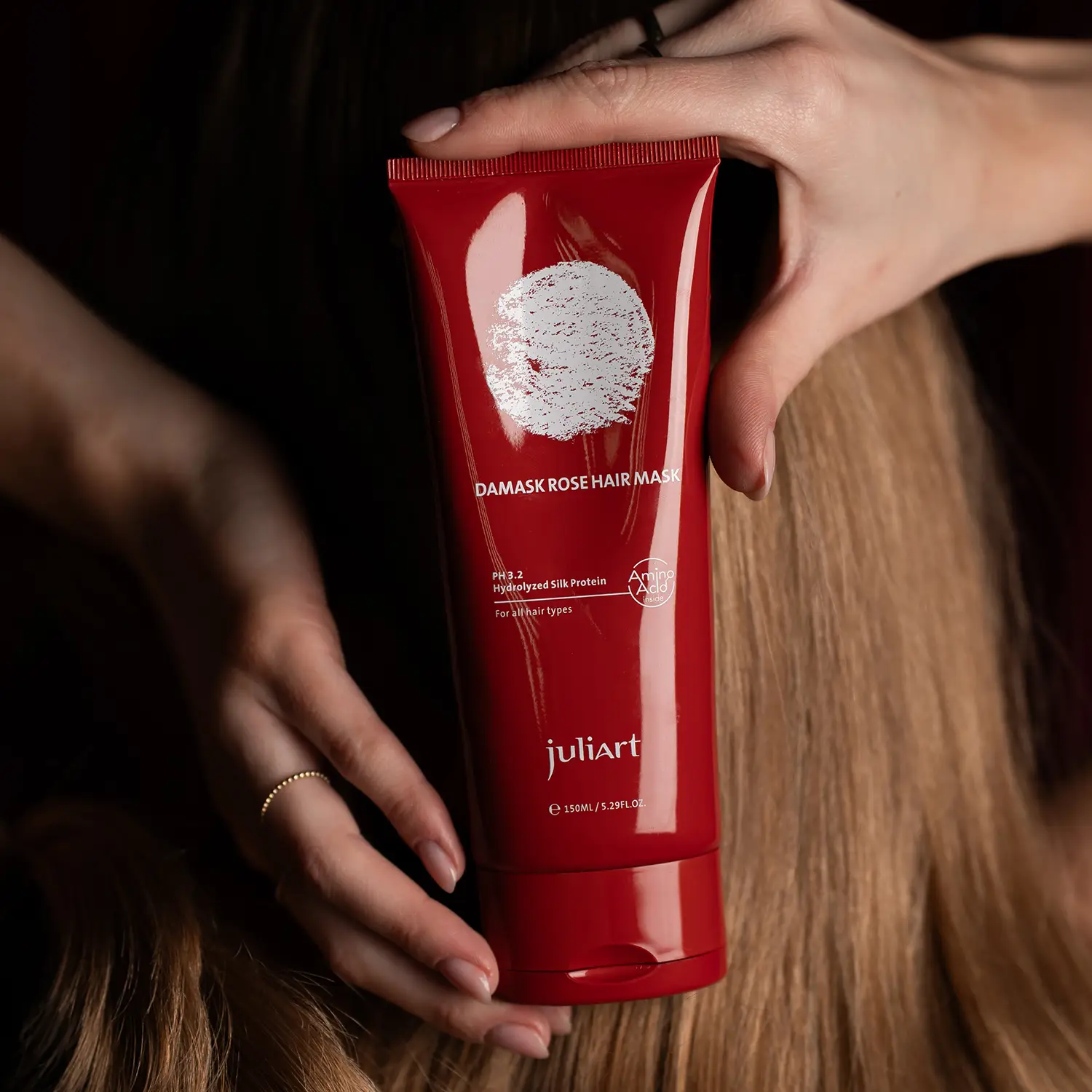 Odkryj moc juliArt Damask Rose Hair Mask, stworzoną z myślą o włosach osłabionych, łamliwych i zniszczonych zabiegami chemicznymi. Ta luksusowa maska dogłębnie odżywia i regeneruje pasma, przywracając im zdrowy wygląd, elastyczność i miękkość.