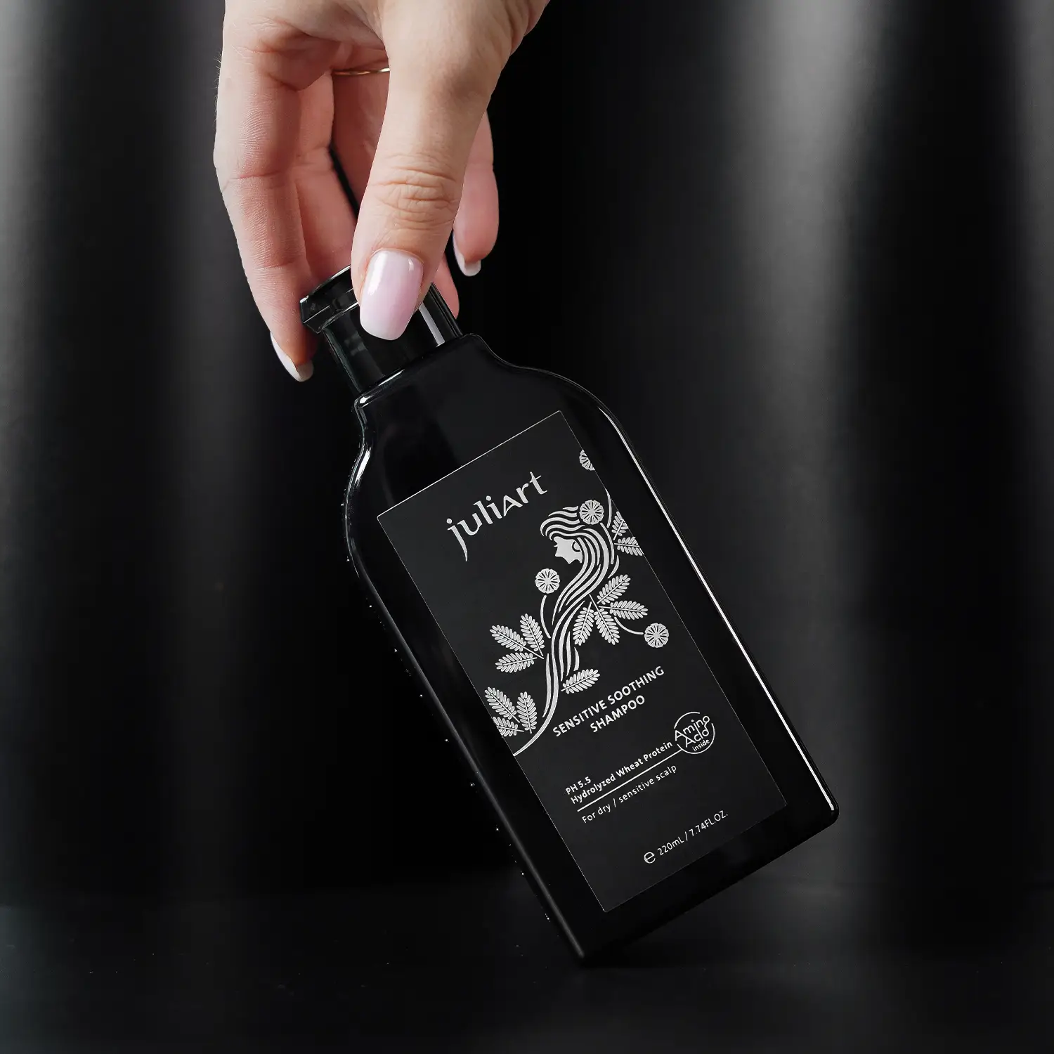 Przynieś ukojenie swojej wrażliwej i suchej skóry głowy dzięki szamponowi juliArt Sensitive Soothing Shampoo. Szampon został stworzony z myślą o osobach zmagających się z podrażnieniami, suchością oraz uszkodzeniami skóry głowy, na przykład po zabiegach chemicznych, takich jak trwała ondulacja czy koloryzacja.